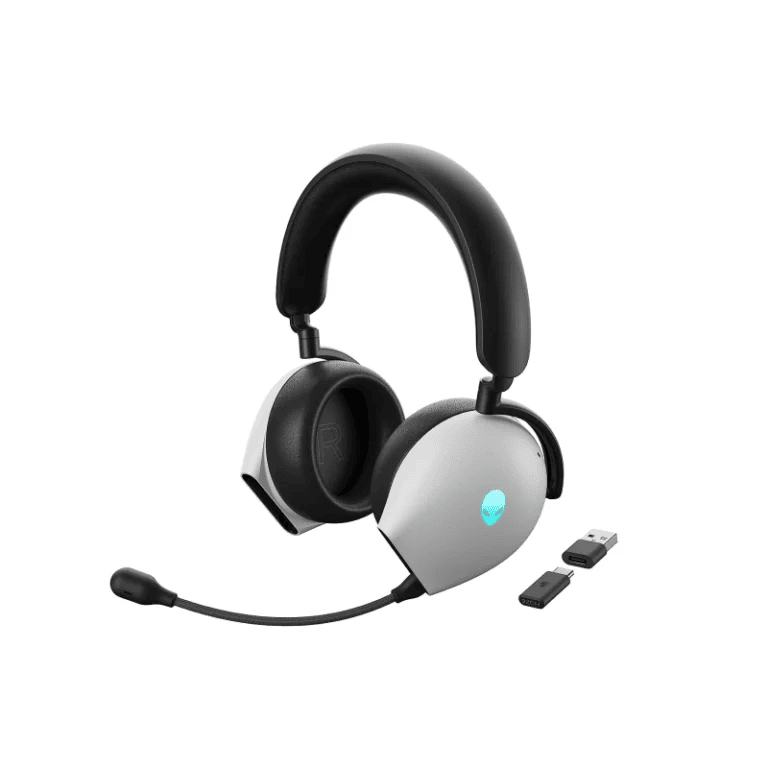 Alienware Tri-Mode Wireless Gaming Headset Active Noise Cancelling And Versatile Connection Options – Lunar Light