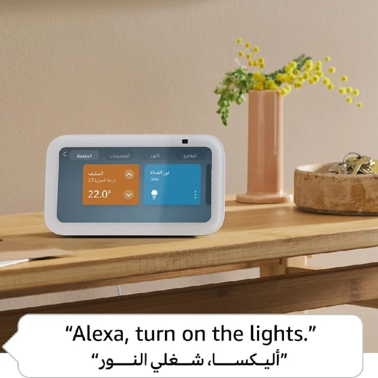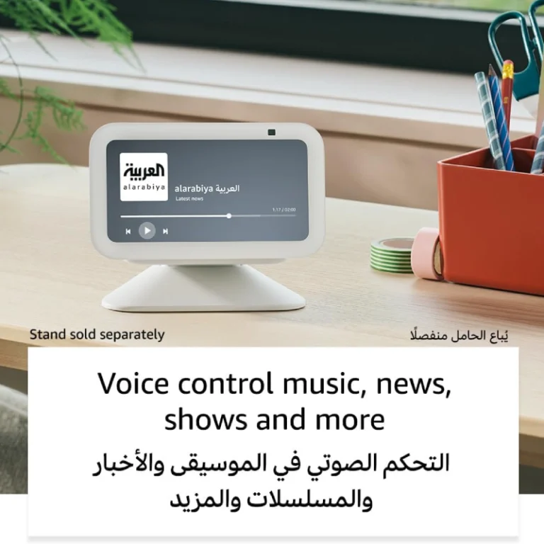 Amazon – Echo Show 5 | 3rd Gen , Smart Display & Alarm Clock | Use your voice to control smart home devices, play music or Quran, & more (Speaks Khaleeji) – White
