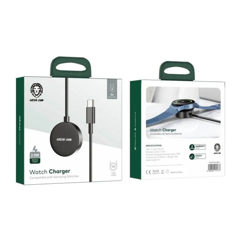 The Green Lion Wireless Watch Charger is the perfect charging solution for Samsung smartwatch users, offering fast, secure, and reliable power delivery. Designed with cutting-edge safety features and a sleek, compact design, this charger ensures that your smartwatch remains powered up without any hassle.